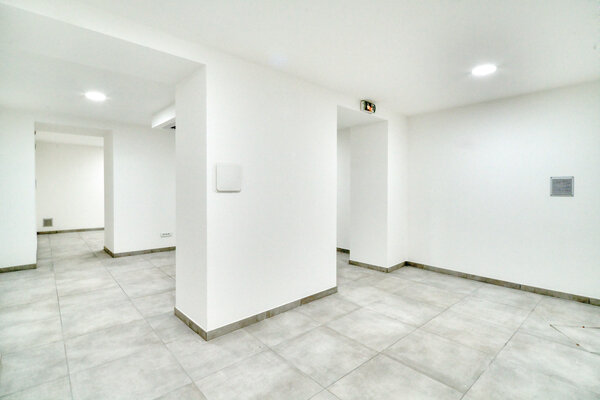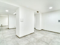 The basement level offers a large open space and one enclosed office, ideal for use as storage, a meeting room, or a support area.