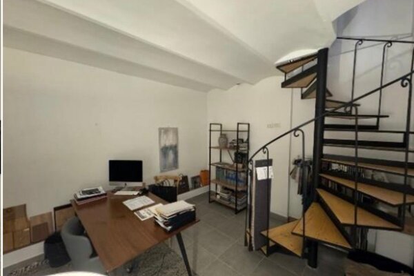 Actuellement loué en bureau, le bien offre une distribution fonctionnelle avec un séjour, une cuisine, une chambre au niveau principal, ainsi qu’un espace complémentaire en niveau inférieur, accessible par escalier en colimaçon, idéal comme salon TV, bureau ou espace de rangement.