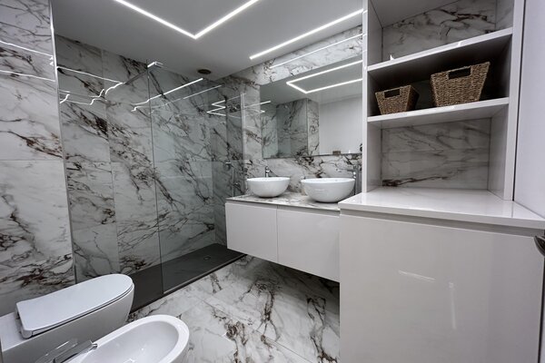 Les finitions, dans des tons clairs et actuels, renforcent la sensation d’espace et de luminosité.